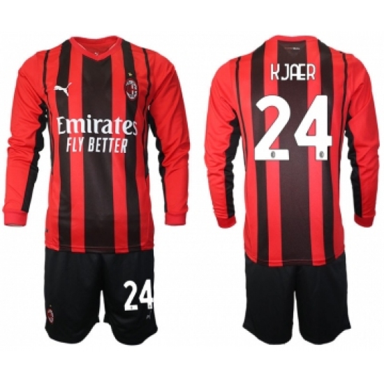 >Men 2021-2022 Club Ac Milan home red Long Sleeve 24 Soccer Jersey