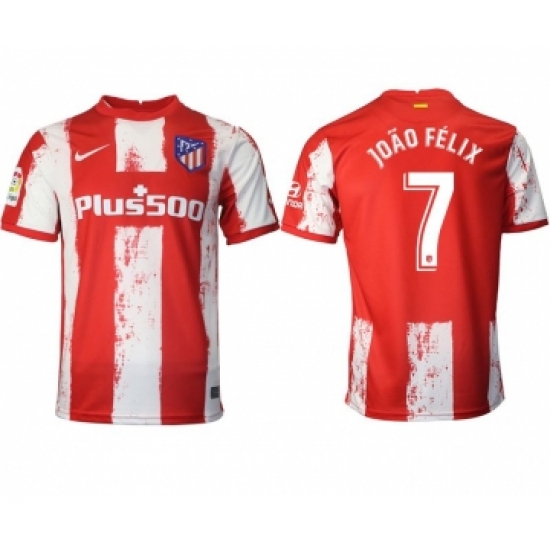 >Men 2021-2022 Club Atletico Madrid home aaa version red 7 Nike Soccer Jersey