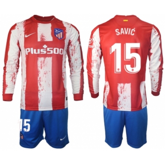 >Men 2021-2022 Club Atletico Madrid home red Long Sleeve 15 Soccer Jersey