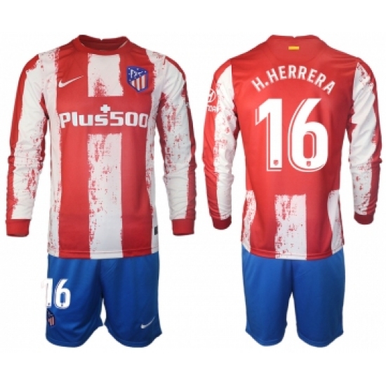 >Men 2021-2022 Club Atletico Madrid home red Long Sleeve 16 Soccer Jersey