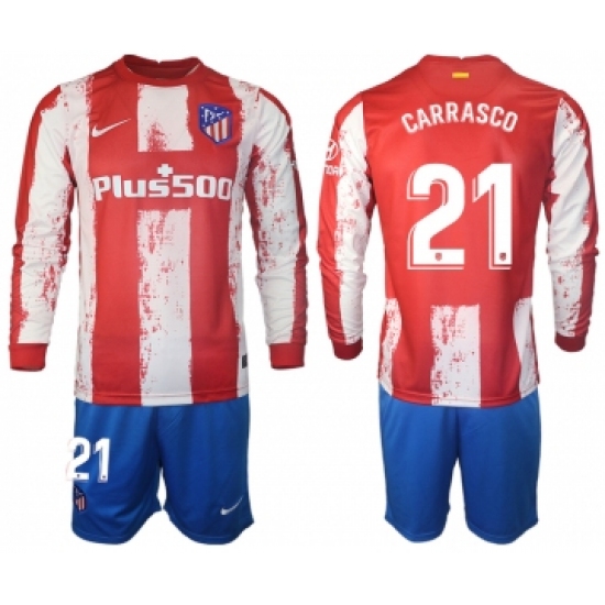 >Men 2021-2022 Club Atletico Madrid home red Long Sleeve 21 Soccer Jersey