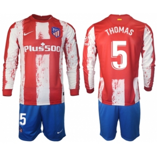 >Men 2021-2022 Club Atletico Madrid home red Long Sleeve 5 Soccer Jersey