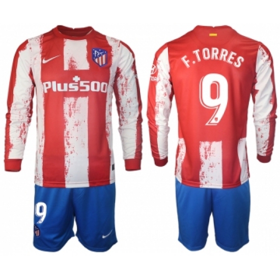 >Men 2021-2022 Club Atletico Madrid home red Long Sleeve 9 Soccer Jerseys