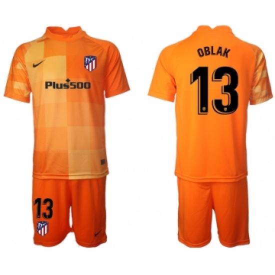 >Men 2021-2022 Club Atletico Madrid orange red goalkeeper 13 Soccer Jersey