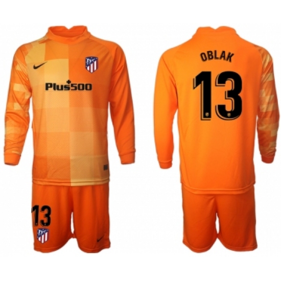 >Men 2021-2022 Club Atletico Madrid orange red goalkeeper Long Sleeve 13 Soccer Jersey