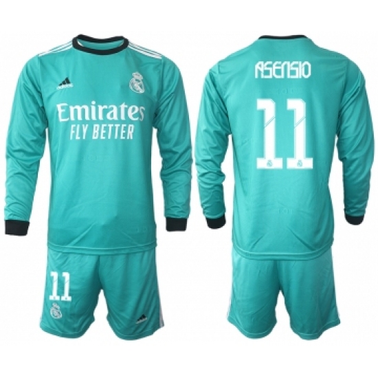 Men 2021-2022 Club Atletico Madrid second away blue Long Sleeve 11 Soccer Jersey