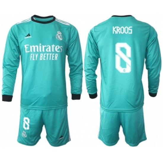 Men 2021-2022 Club Atletico Madrid second away blue Long Sleeve 8 Soccer Jersey
