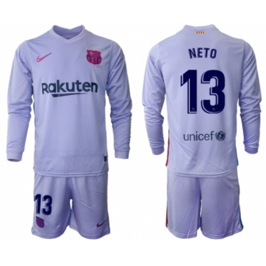 >Men 2021-2022 Club Barcelona Second away purple Long Sleeve 13 Soccer Jersey