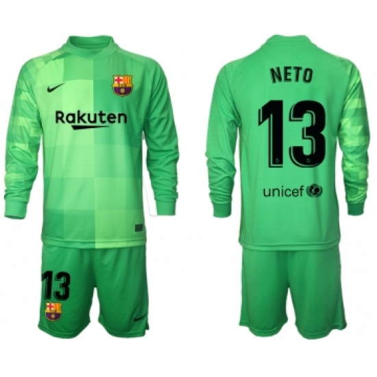 Men 2021-2022 Club Barcelona green goalkeeper Long Sleeve 13 Soccer Jersey