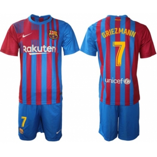 >Men 2021-2022 Club Barcelona home blue 7 Nike Soccer Jersey