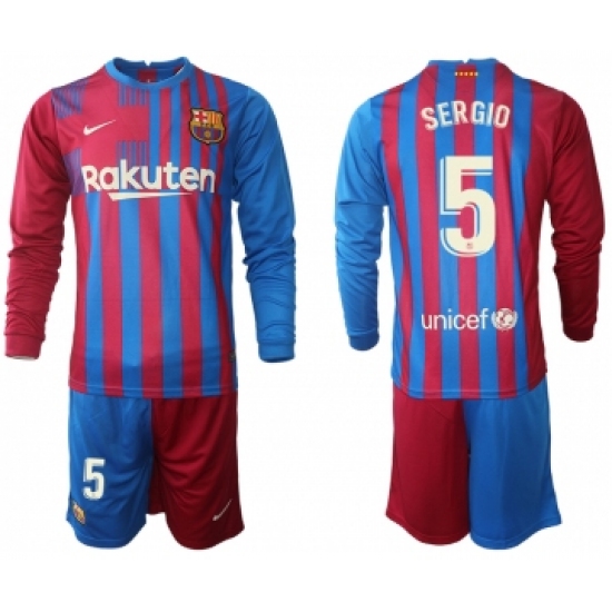 >Men 2021-2022 Club Barcelona home red blue Long Sleeve 5 Nike Soccer Jersey