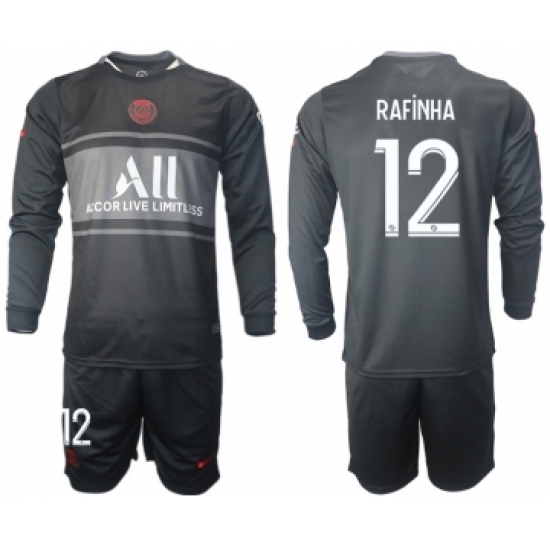 >Men 2021-2022 Club Paris St German Second away black Long Sleeve 12 Soccer Jersey