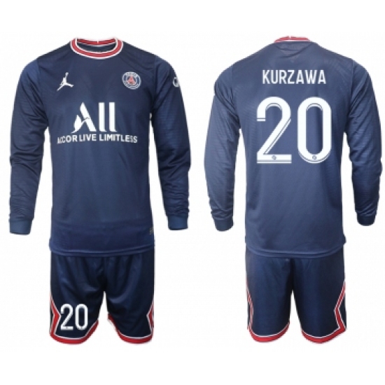 >Men 2021-2022 Club Paris St German home blue Long Sleeve 20 Soccer Jersey