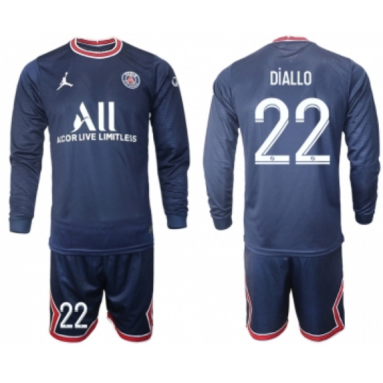 >Men 2021-2022 Club Paris St German home blue Long Sleeve 22 Soccer Jersey