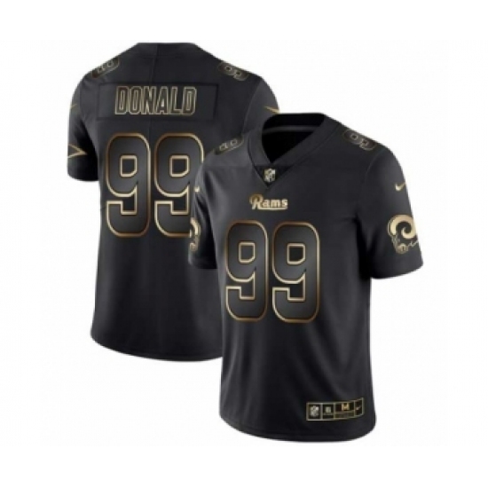 >Men Los Angeles Rams #99 Aaron Donald Black Golden Edition 2019 Vapor Untouchable Limited Jersey