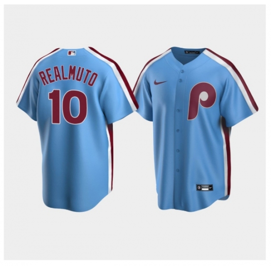 >Men Philadelphia Phillies #10 J.T. Realmuto Light Blue Cooperstown Collection Road
