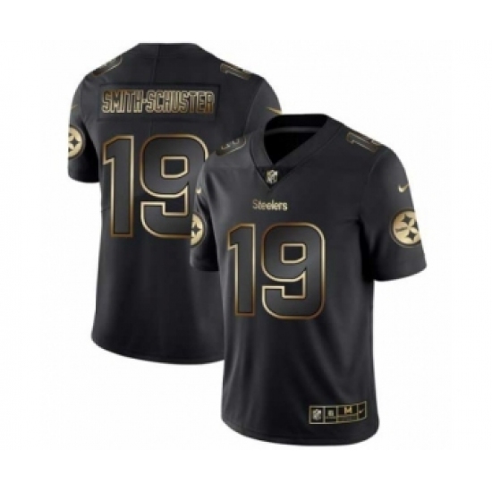 >Men Pittsburgh Steelers #19 JuJu Smith-Schuster Black Golden Edition 2019 Vapor Untouchable Limited Jersey