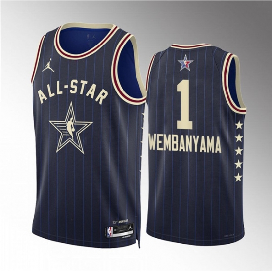 Men's 2024 All-Star #1 Victor Wembanyama Navy Stitched Basketball Jersey