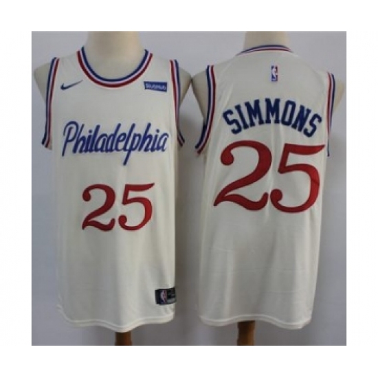 Men's Nike Philadelphia 76ers #25 Ben Simmons Swingman Cream NBA Jersey - City Edition