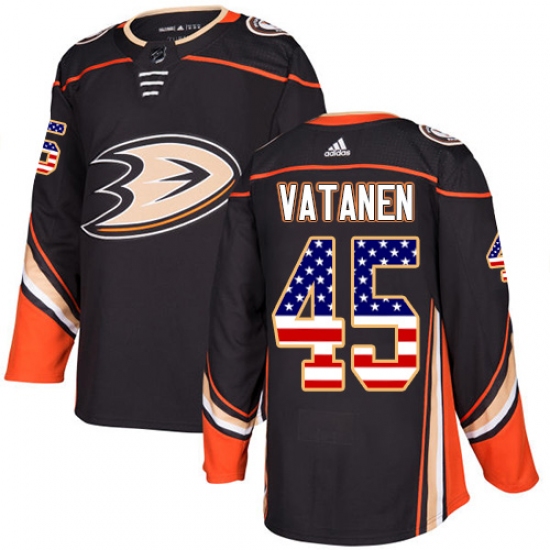 Men's Adidas Anaheim Ducks #45 Sami Vatanen Authentic Black USA Flag Fashion NHL Jersey