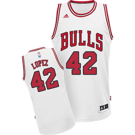 Men's Adidas Chicago Bulls #42 Robin Lopez Swingman White Home NBA Jersey