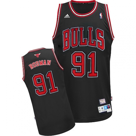 Men's Adidas Chicago Bulls #91 Dennis Rodman Swingman Black Throwback NBA Jersey