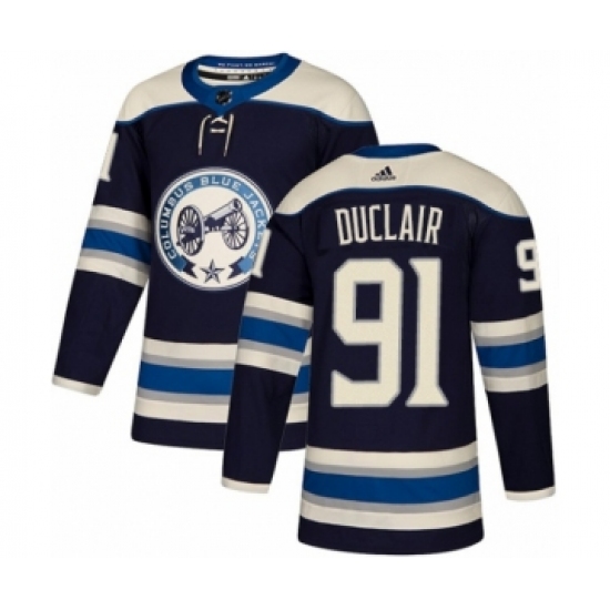 >Men's Adidas Columbus Blue Jackets #91 Anthony Duclair Premier Navy Blue Alternate NHL Jersey