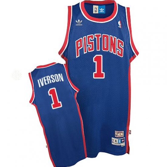 Men's Adidas Detroit Pistons #1 Allen Iverson Swingman Blue Throwback NBA Jersey