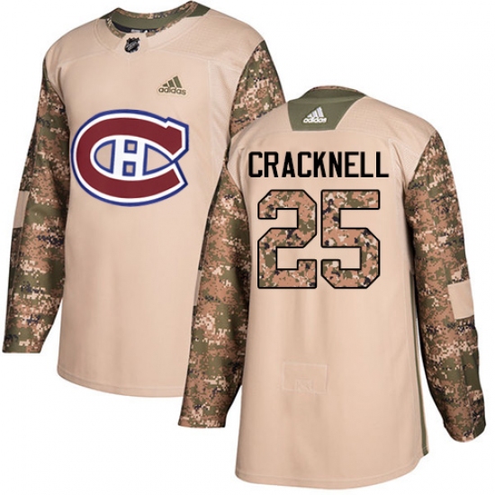 >Men's Adidas Montreal Canadiens #25 Adam Cracknell Authentic Camo Veterans Day Practice NHL Jersey