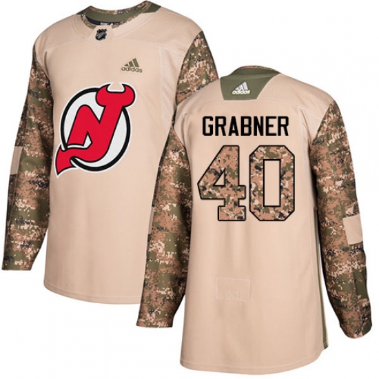 >Men's Adidas New Jersey Devils #40 Michael Grabner Authentic Camo Veterans Day Practice NHL Jersey