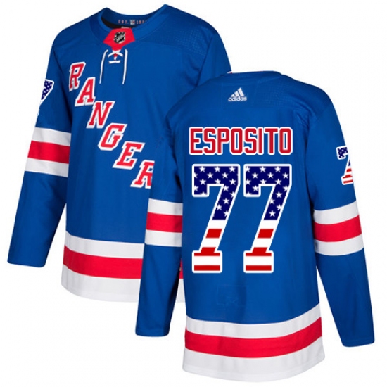 Men's Adidas New York Rangers #77 Phil Esposito Authentic Royal Blue USA Flag Fashion NHL Jersey