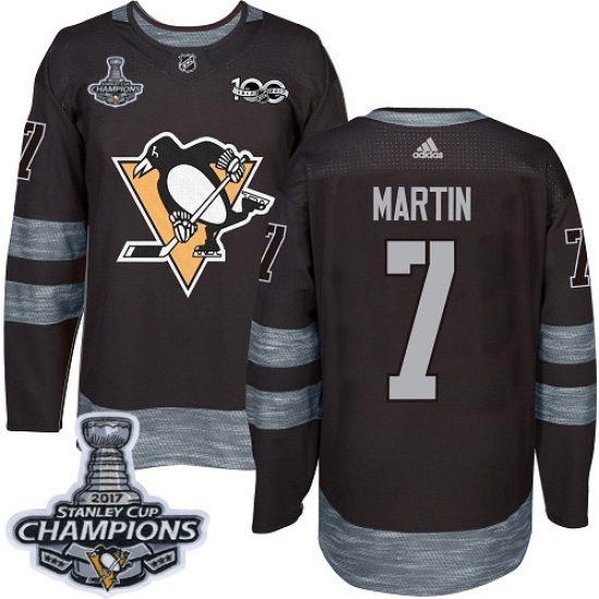 Home>NHL>Pittsburgh Penguins>Paul Martin>Men's Adidas Pittsburgh Penguins #7 Paul Martin Authentic Black 1917-2017 100th Anniversary 2017 Stanley Cup Champions NHL Jersey