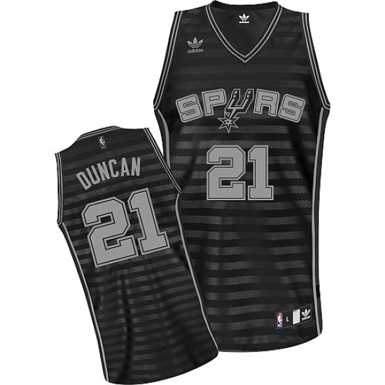 Men's Adidas San Antonio Spurs #21 Tim Duncan Swingman Black/Grey Groove NBA Jersey