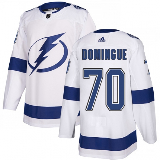 Men's Adidas Tampa Bay Lightning #70 Louis Domingue Authentic White Away NHL Jersey