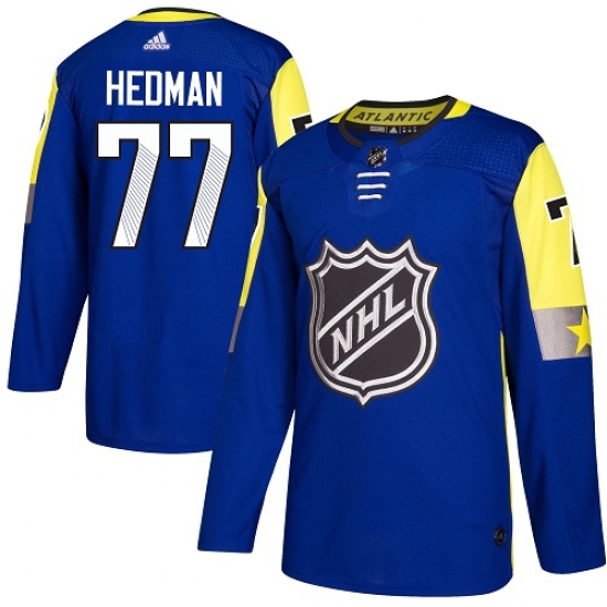 Men's Adidas Tampa Bay Lightning #77 Victor Hedman Authentic Royal Blue 2018 All-Star Atlantic Division NHL Jersey