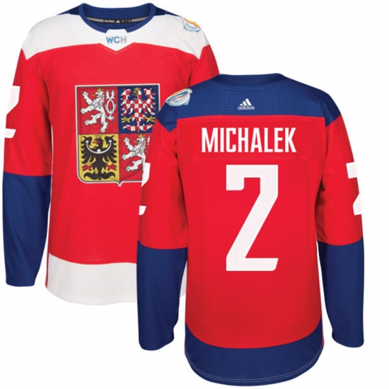 Men's Adidas Team Czech Republic #2 Zbynek Michalek Premier Red Away 2016 World Cup of Hockey Jersey