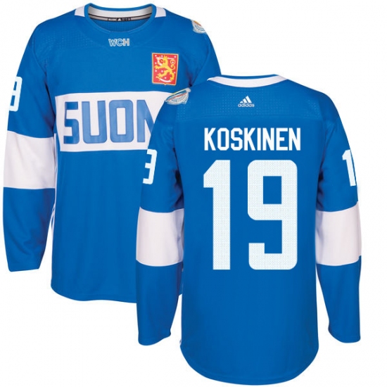 Men's Adidas Team Finland #19 Mikko Koskinen Premier Blue Away 2016 World Cup of Hockey Jersey