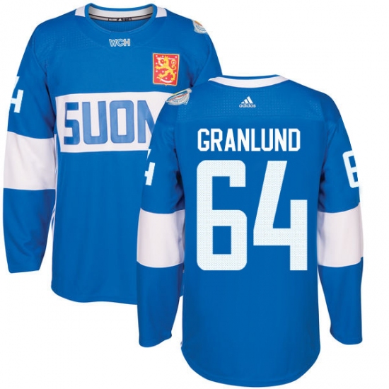 Men's Adidas Team Finland #64 Mikael Granlund Premier Blue Away 2016 World Cup of Hockey Jersey