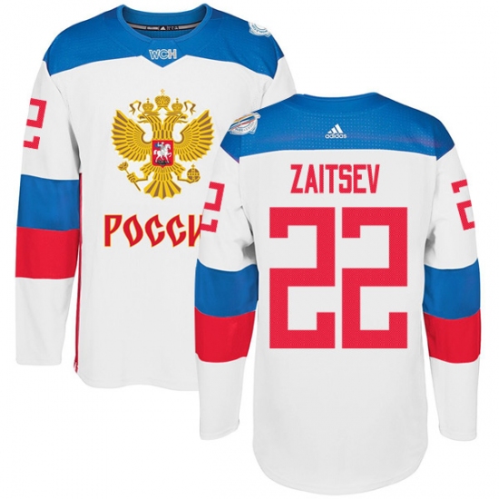 Home>NHL>Team Russia>Nikita Zaitsev>Men's Adidas Team Russia #22 Nikita Zaitsev Premier White Home 2016 World Cup of Hockey Jersey