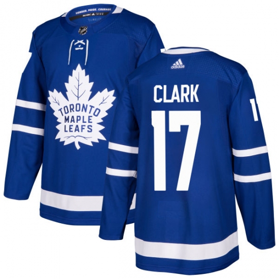Men's Adidas Toronto Maple Leafs #17 Wendel Clark Premier Royal Blue Home NHL Jersey