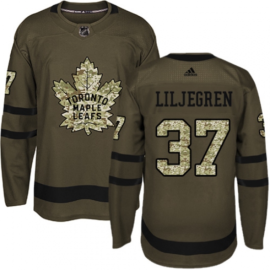 Men's Adidas Toronto Maple Leafs #37 Timothy Liljegren Authentic Green Salute to Service NHL Jersey