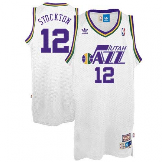Men's Adidas Utah Jazz #12 John Stockton Swingman White Throwback NBA Jersey