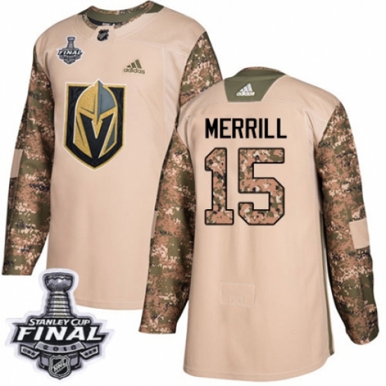 Men's Adidas Vegas Golden Knights #15 Jon Merrill Authentic Camo Veterans Day Practice 2018 Stanley Cup Final NHL Jersey