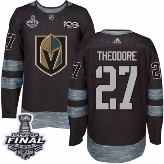 Men's Adidas Vegas Golden Knights #27 Shea Theodore Authentic Black 1917-2017 100th Anniversary 2018 Stanley Cup Final NHL Jersey