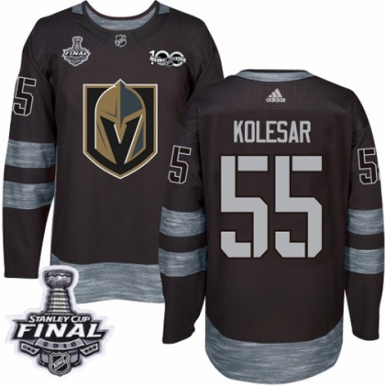 Men's Adidas Vegas Golden Knights #55 Keegan Kolesar Authentic Black 1917-2017 100th Anniversary 2018 Stanley Cup Final NHL Jersey