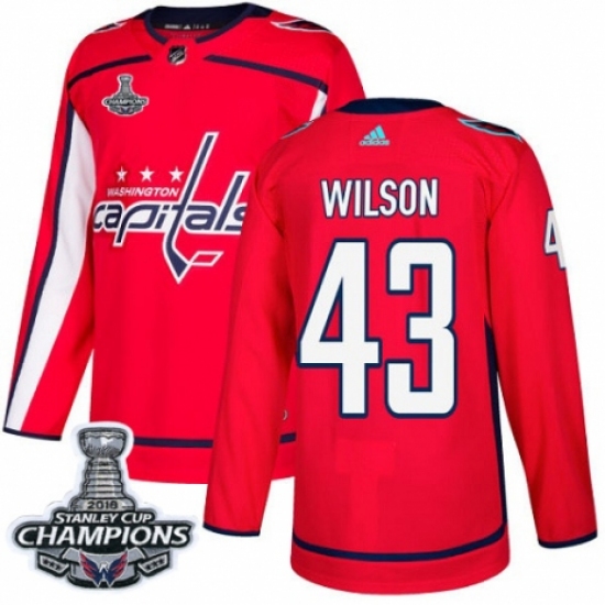 Men's Adidas Washington Capitals #43 Tom Wilson Authentic Red Home 2018 Stanley Cup Final Champions NHL Jersey