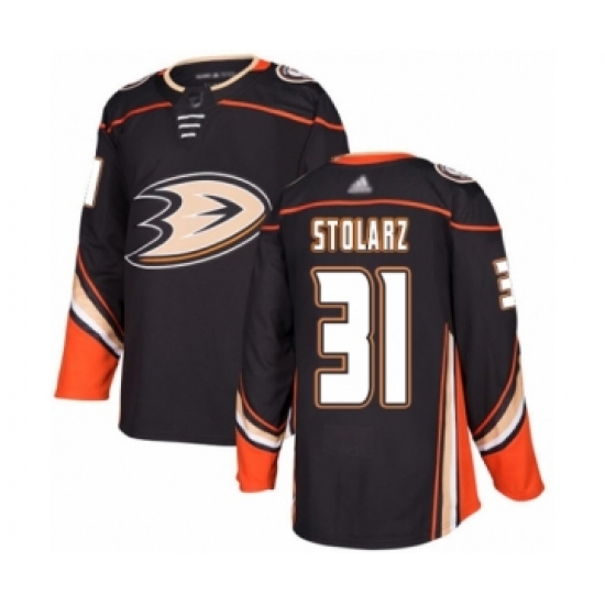 Men's Anaheim Ducks #31 Anthony Stolarz Authentic Black Home Hockey Jersey