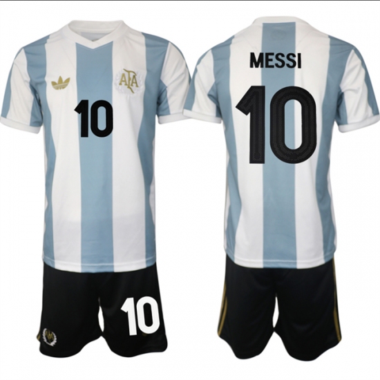 Men's Argentina #10 Lionel Messi White Blue 2025 Home Soccer Jersey Suit