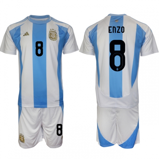 >Men's Argentina #8 Enzo White Blue 2024-25 Home Soccer Jersey Suit