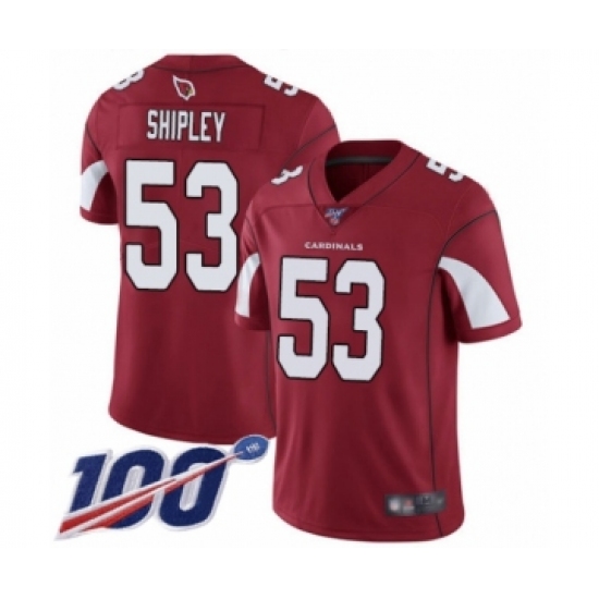 Men's Arizona Cardinals #53 A.Q. Shipley Red Team Color Vapor Untouchable Limited Player 100th Season Football Jersey